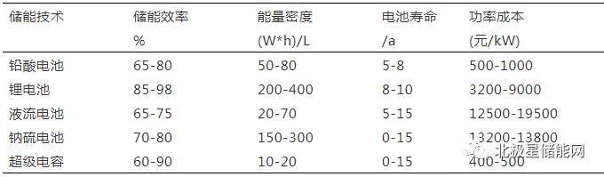 參照儲能技術的參數(shù)表2[3],雖然與鉛酸電池相比,鋰離子電池仍存在成本高的問題,但鋰離子電池也具備循環(huán)壽命長、能效高、能量密度大、綠色環(huán)保等優(yōu)勢;與鈉硫電池、液流電池相較,鋰電池在成本上較其有明顯的優(yōu)勢;超級電容儲能雖然成本較低,但是能量密度制約其發(fā)展進程,優(yōu)勢也不如鋰電池來的明顯。