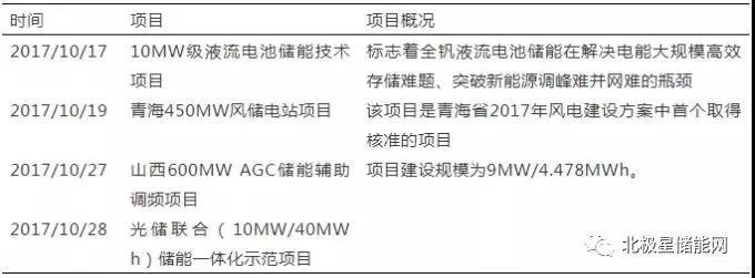 表3 2017年10-11月儲能示范項目匯總表