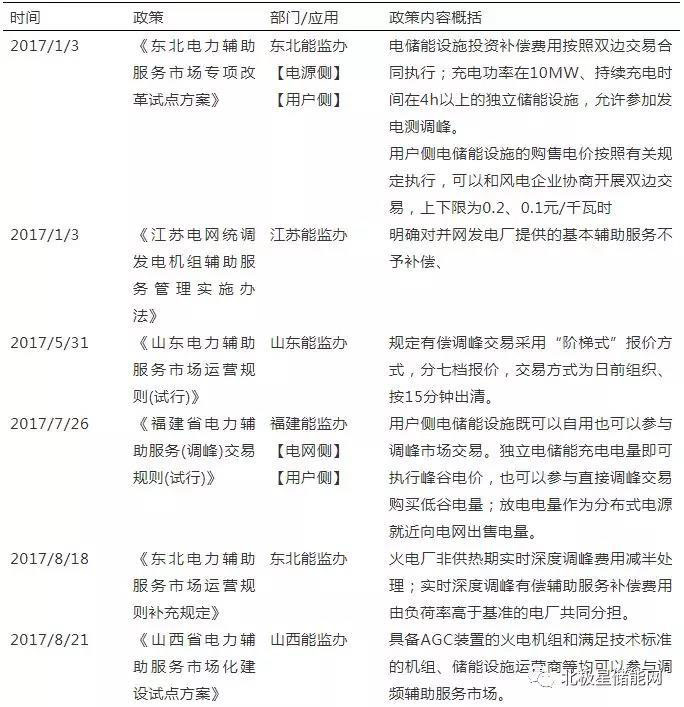 2017年11月,國家能源局發(fā)布《完善電力輔助服務補償(市場)機制工作方案》,明確了全面推進電力輔助服務補償(市場)工作主要目標和主要任務,自2017年至2020年,分三階段進行實施。其中,第二階段的任務是建立電力用戶參與電力輔助服務分擔共享機制,其亮點在于《方案》鼓勵“電力用戶參與提供電力輔助服務,簽訂帶負荷曲線的電力直接交易合同”,這也就創(chuàng)造了對輔助服務的市場需求,從而為用戶需求響應和儲能參與電力市場創(chuàng)造了條件。