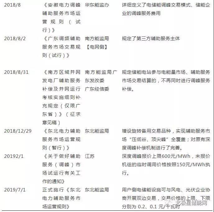 2017年,電力輔助服務新政成為國內(nèi)電力市場改革的熱點,東北、江蘇、山東陸續(xù)發(fā)布實施本省的電力輔助服務市場運營規(guī)則(見表4),其中有文件明確指出儲能電站的建設標準、補償結算辦法等。除此之外,新疆已經(jīng)發(fā)布了征求意見稿,山西和福建兩省正在積極籌劃。如此密集的電力輔助服務新政出臺頻次,足見國家對電力輔助服務的重視。