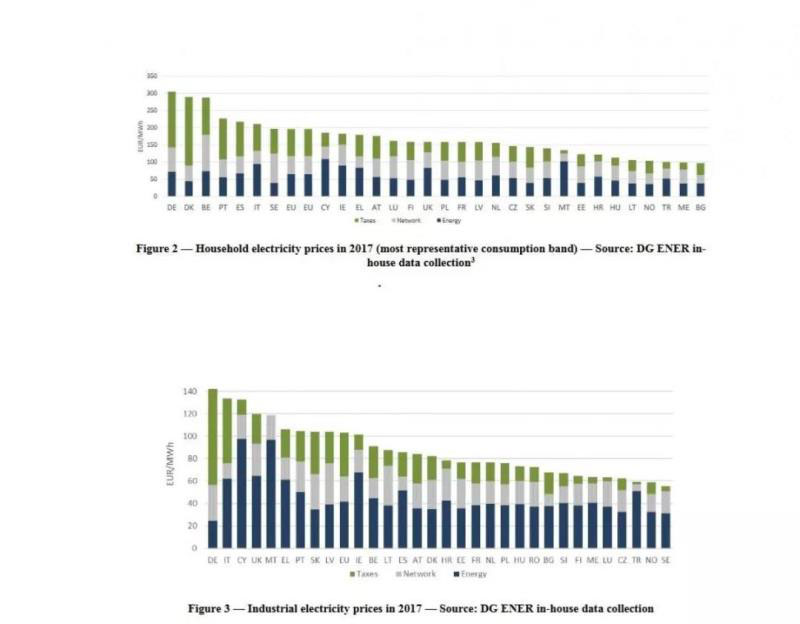 歐盟數(shù)據(jù)顯示,2017年德國(guó)居民電價(jià)高達(dá)0.3歐元/kWh,工業(yè)電價(jià)超過(guò)0.14歐元/kWh,創(chuàng)下歐盟最高電價(jià)記錄,而歐盟的平均電價(jià)水平是居民電價(jià)略低于0.2歐元/kWh,工業(yè)電價(jià)略低于0.1歐元/kWh。德意志通訊社在德國(guó)商報(bào)中發(fā)布消息稱,經(jīng)濟(jì)和能源部長(zhǎng)將與國(guó)家氣候內(nèi)閣協(xié)商,降低國(guó)內(nèi)電價(jià)。