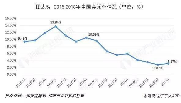 政府一系列政策相繼出臺(tái),棄光現(xiàn)象得到有效改善。根據(jù)國家能源局?jǐn)?shù)據(jù)顯示,自2015年以來,我國棄光率呈波動(dòng)下降的趨勢。棄光率從2016第一季度的13.84%高位,波動(dòng)下降,至2018年第三季度,棄光率已經(jīng)降至的2.87%。