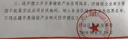 新疆方面為規(guī)范市場,基于貫徹政策的嚴(yán)肅性,在8月份還出臺了一份補充通知,對單方面不能落實試點項目實施的儲能企業(yè),將拉入失信黑名單,以后不得在新疆開展儲能產(chǎn)業(yè)相關(guān)投資建設(shè)工作。