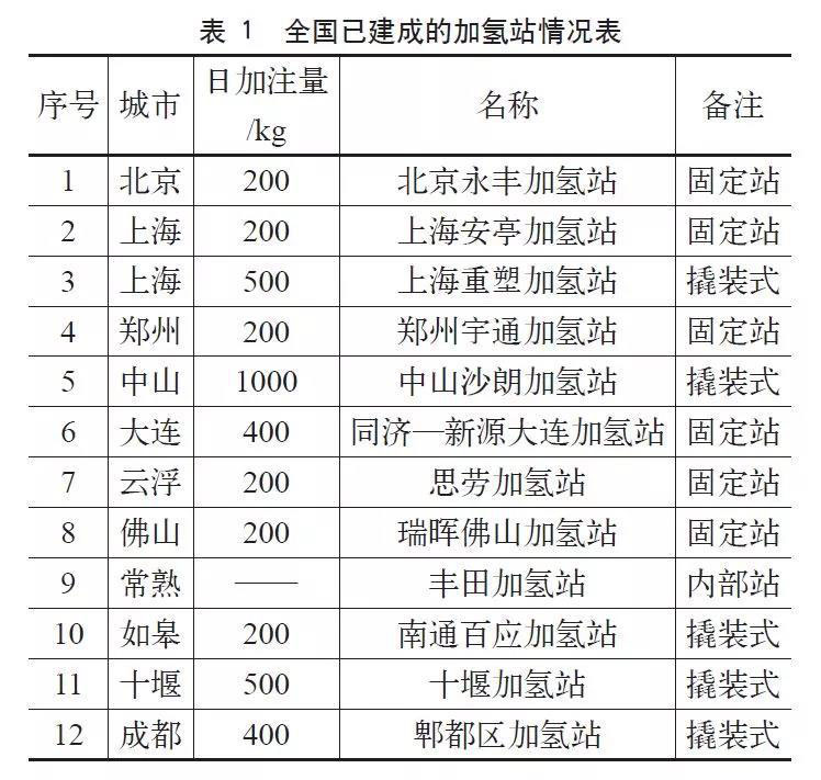 加氫環(huán)節(jié),2006年以來,我國已建成加氫站12座,另有20余座加氫站在建(見表1)。
