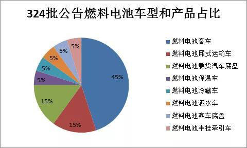 從車型來看,燃料電池客車依然是重頭戲,多元化趨勢顯現(xiàn)。據(jù)統(tǒng)計,參與申報第324批次的20款燃料電池車型產(chǎn)品中,燃料電池客車數(shù)量最多,達(dá)到9輛;3輛燃料電池廂式運(yùn)輸車和3款燃料電池載貨汽車底盤位居第二,此外還有其它還有燃料電池保溫車、燃料電池冷藏車、燃料電池灑水車、燃料電池客車底盤、燃料電池半掛牽引車均為1款。
