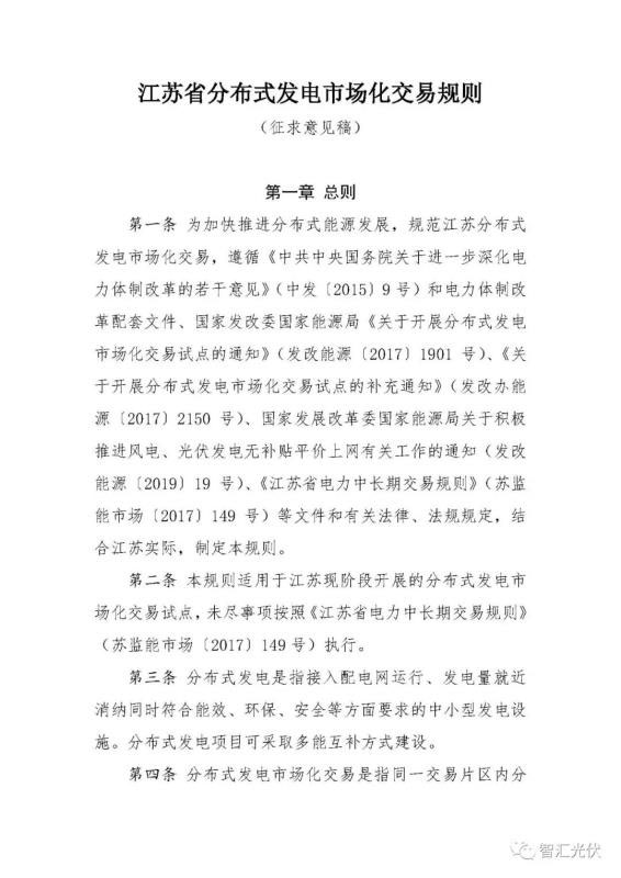近日,江蘇省發(fā)布了《江蘇省分布式發(fā)電市場(chǎng)化交易規(guī)則》(征求意見稿)。根據(jù)文件: