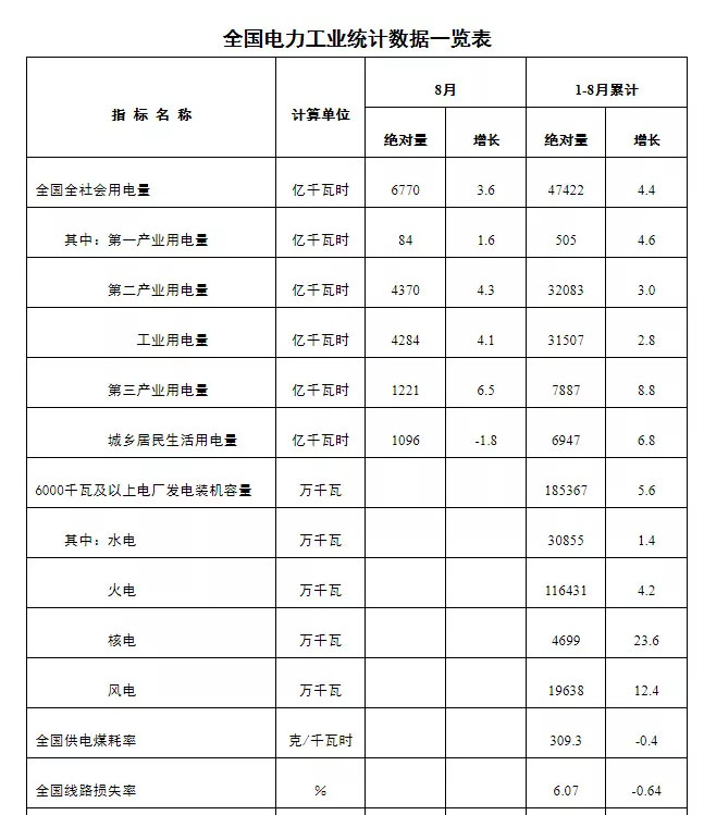 中國儲(chǔ)能網(wǎng)訊:9月18日,國家能源局發(fā)布1-8月份全國電力工業(yè)統(tǒng)計(jì)數(shù)據(jù)。
