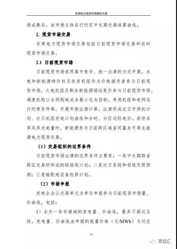 水電和新能源特許權(quán)及扶貧機(jī)組作為價(jià)格接受者參與日前現(xiàn)貨市場(chǎng),火電機(jī)組及剩余新能源場(chǎng)站競(jìng)價(jià)參與日前現(xiàn)貨市場(chǎng)。