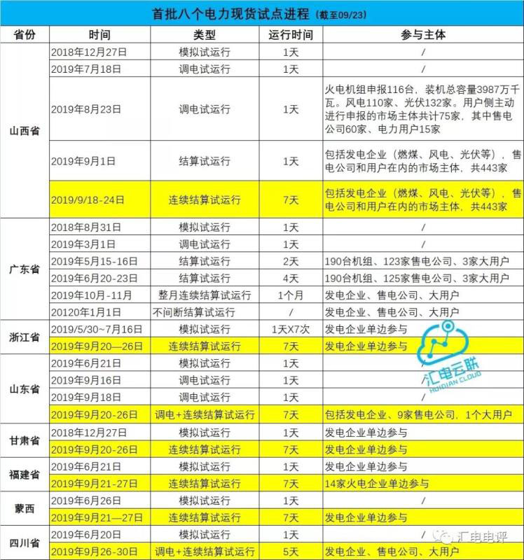 進入9月份以來,我國首批8個電力現(xiàn)貨市場試點,紛紛啟動連續(xù)結(jié)算試運行。此前廣東、山西等省份已經(jīng)開展多次模擬試運行和調(diào)電試運行,廣東在6月份已經(jīng)開展連續(xù)4天結(jié)算試運行。