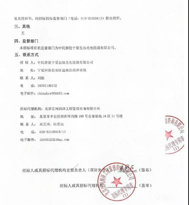 根據(jù)招標(biāo)公告,該項(xiàng)目位于中民投寧夏(鹽池)新能源綜合示范區(qū)內(nèi),根據(jù)寧夏回族自治區(qū)發(fā)改委下發(fā)的《關(guān)于2019年度光伏發(fā)電項(xiàng)目申報(bào)有關(guān)事項(xiàng)的預(yù)通知》,鹽池光電于2017年6月以投標(biāo)方式申報(bào)競(jìng)價(jià)光伏發(fā)電項(xiàng)目指標(biāo),并于2019年7月獲得200MW競(jìng)價(jià)指標(biāo),裝機(jī)容量200MW,占地面積約6000畝,計(jì)劃工期為90天。