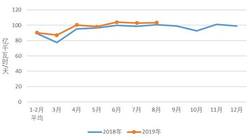 圖2 2018、2019年分月制造業(yè)日均用電量