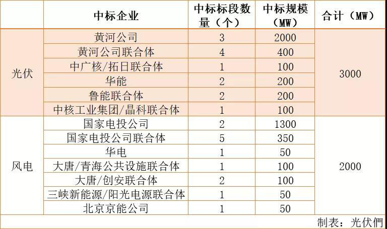 需要強調(diào)的是,根據(jù)評標(biāo)結(jié)果,在光伏標(biāo)段中,第一中標(biāo)候選人均為國家電投黃河公司/黃河公司聯(lián)合體;風(fēng)電標(biāo)段中,除華電獲50MW標(biāo)段之外,其他標(biāo)段中標(biāo)候選人均為國家電投/國家電投聯(lián)合體。毫無疑問,國家電投將成為此次招標(biāo)的最大贏家。