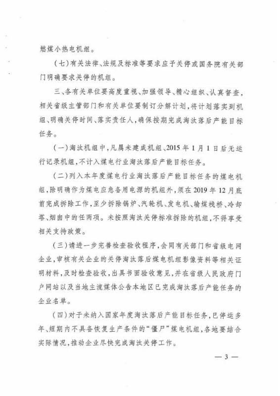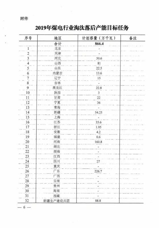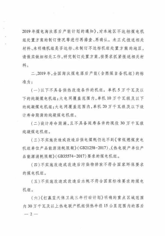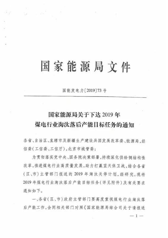 國(guó)家能源局關(guān)于下達(dá)2019年煤電行業(yè)淘汰落后產(chǎn)能目標(biāo)任務(wù)的通知