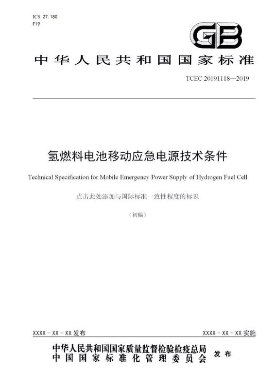 關(guān)鍵字:氫燃料電池移動應(yīng)急電源 標準