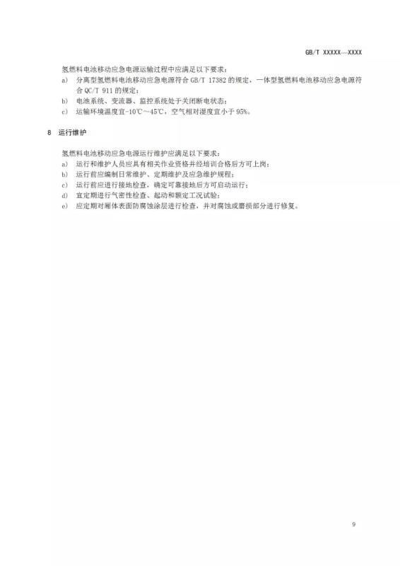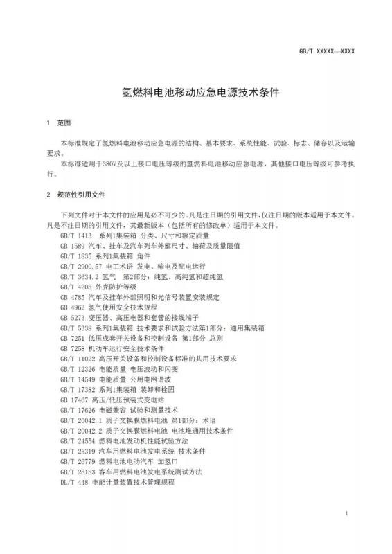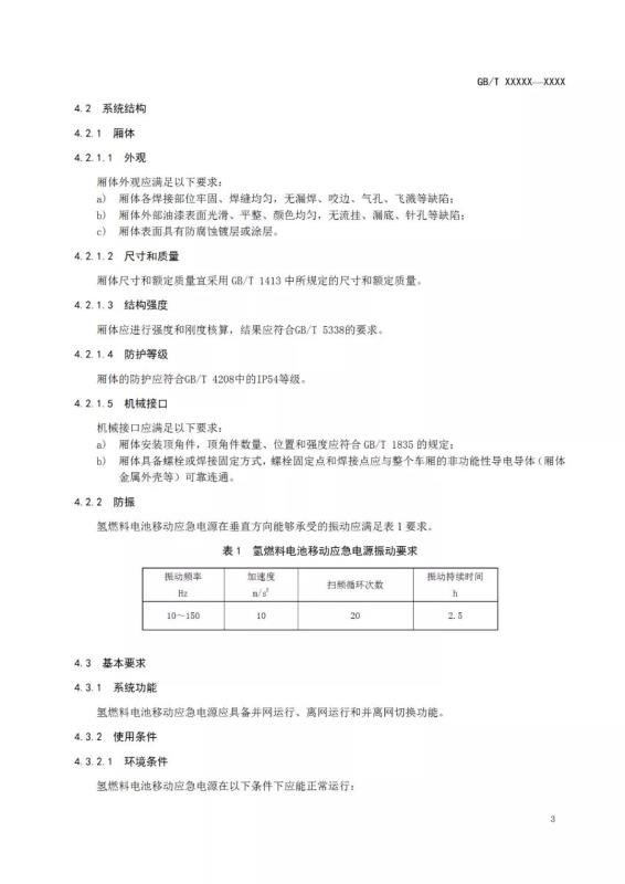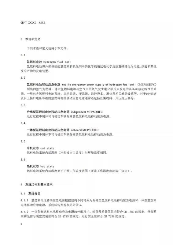 《氫燃料電池移動應(yīng)急電源技術(shù)條件》標準征求意見稿