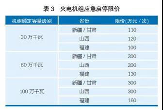 運行日前一天,火電企業(yè)按照機組額定容量級別對應(yīng)的應(yīng)急啟停調(diào)峰報價區(qū)間浮動報價,由電力調(diào)控中心日內(nèi)根據(jù)電網(wǎng)需要調(diào)用。新疆、甘肅是按照各機組單位容量報價由低價到高價依次調(diào)用;福建、山西是按照機組總報價由低價到高價依次調(diào)用,福建市場中還明確若報價相同則優(yōu)先調(diào)用額定容量大的機組。各省主力火電機組應(yīng)急啟停報價限制如表3所示,新疆、甘肅、山西的限價較為接近甚至完全相同,但福建市場限價要明顯低于其他三個省份,特別是百萬機組的限價僅為其他省份限價的一半左右。