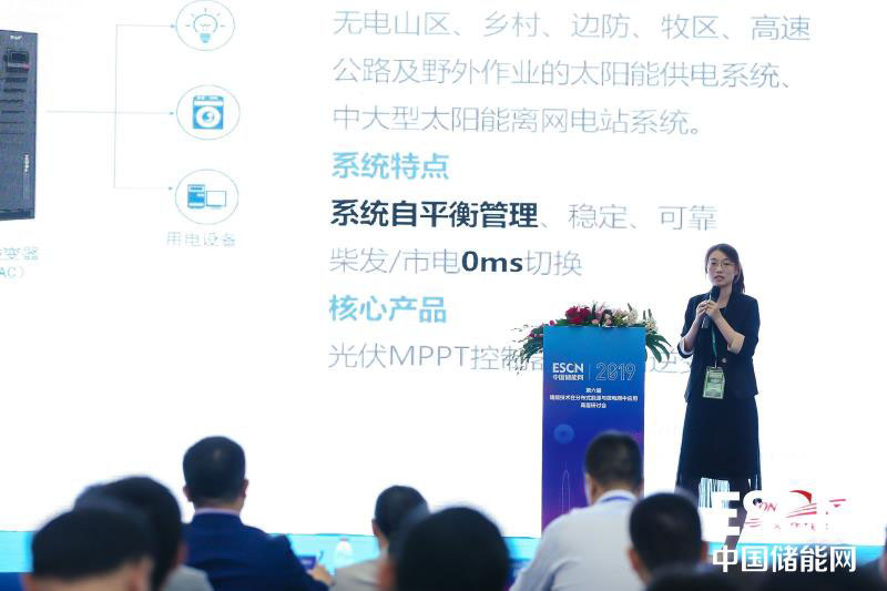 科華恒盛股份有限公司新能源事業(yè)部高級技術(shù)經(jīng)理張依鈴做《 微電網(wǎng)控制策略與應(yīng)用》報告。