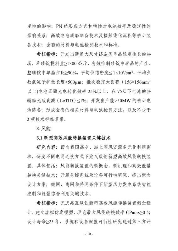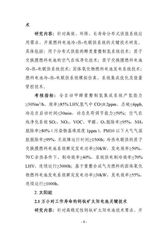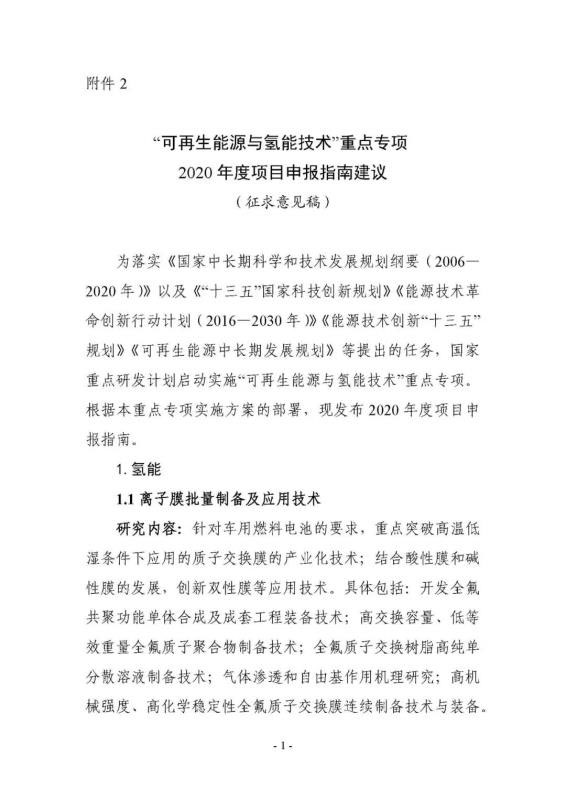 “可再生能源與氫能技術”重點專項2020年度項目申報指南建議
