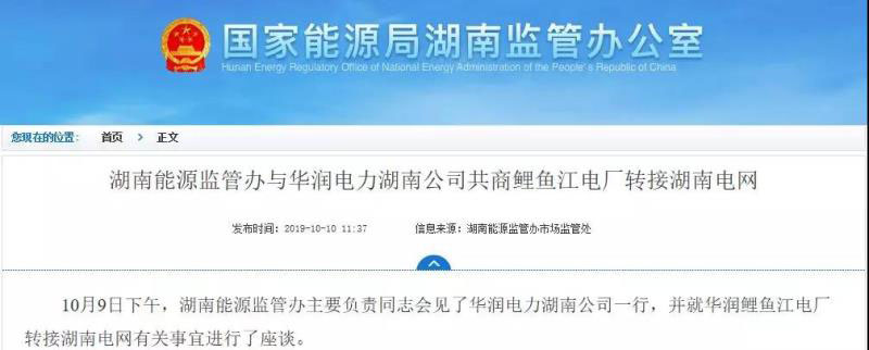 湖南能監(jiān)辦新聞稿稱,華潤鯉魚江電廠地處湖南省南部,是“西電東送”項目,接入廣東電網(wǎng)。但是,湖南電力逐年緊缺,湘南地區(qū)嚴(yán)重缺乏電源支撐,無法承擔(dān)“西電東送”的功能。湖南能源監(jiān)管辦主要負(fù)責(zé)同志向國家能源局和省委省政府提出了將華潤鯉魚江電廠轉(zhuǎn)接湖南電網(wǎng)的建議,得到上級領(lǐng)導(dǎo)的重視和支持。近期,湘粵兩省政府主要領(lǐng)導(dǎo)已就鯉魚江電廠轉(zhuǎn)接湖南電網(wǎng)形成共識,并得到國家能源主管部門的認(rèn)同和支持。