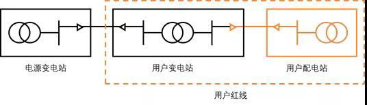 2018年以來,部分發(fā)達(dá)地區(qū)的電網(wǎng)企業(yè)將投資界面推到了用戶紅線內(nèi),中壓用戶不再需要自行建設(shè)變電站或者環(huán)網(wǎng)柜(僅需提供場地),接電成本降到了0。下圖是中壓用戶供電設(shè)施在此種情況下的投資界面劃分方式:
