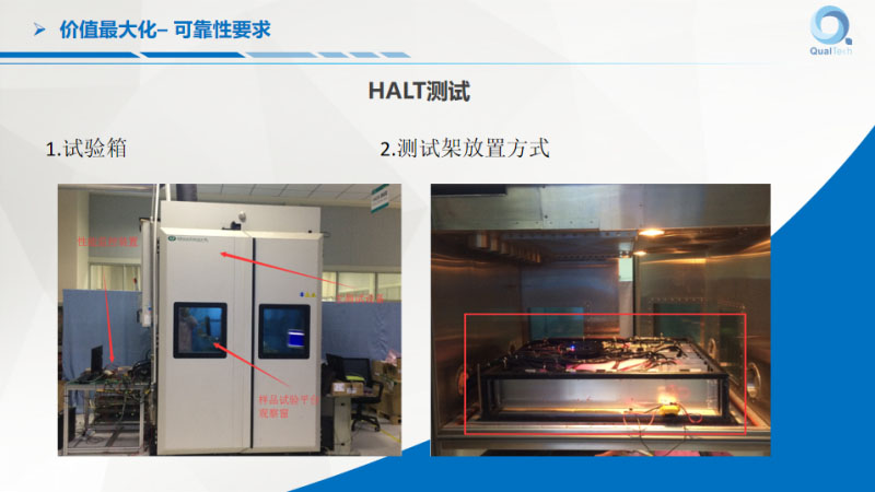 這是我們的可靠性的HALT測(cè)試(見PPT),可以通過這些方式確保產(chǎn)品是可靠的。