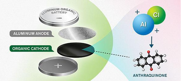 中國(guó)儲(chǔ)能網(wǎng)訊:新概念電池的陽(yáng)極和陰極分別由鋁和蒽醌基有機(jī)材料制成。這種有機(jī)陰極材料能有效地儲(chǔ)存一種鋁和氯基電解液中的正電荷載流子(陽(yáng)離子),離子在電解液中往返于正負(fù)電極,形成電流。