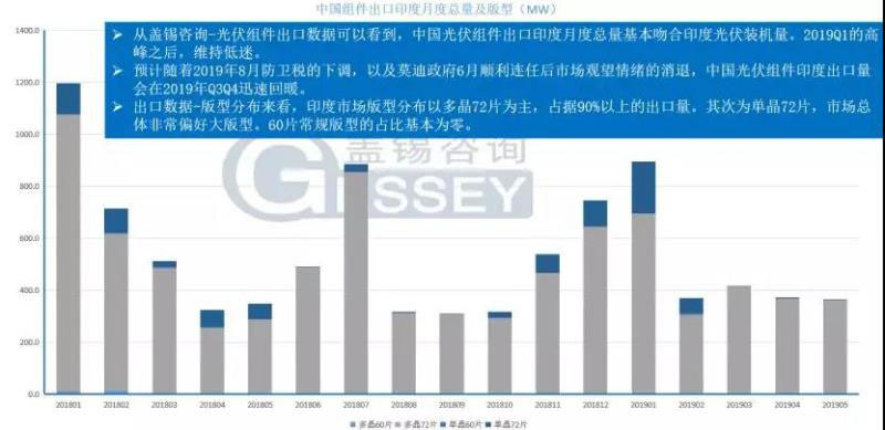 需要注意的是,印度市場對價格非常敏感,多晶占據(jù)了主導(dǎo)地位,從蓋錫咨詢的出口數(shù)據(jù)-版型分布來看,印度市場版型分布以多晶72片為主,占據(jù)90%以上的出口量。