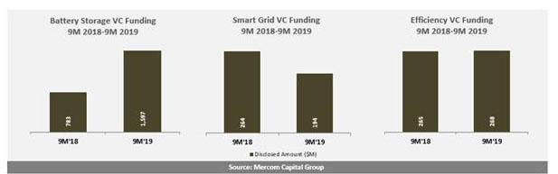 中國儲能網(wǎng)訊:2019年1-9月,全球電池存儲,智能電網(wǎng)和能效企業(yè)的全球VC資金(風險資本,私募股權和公司風險資本)超過20億美元,較之去年同期的13億美元增長增長54%。