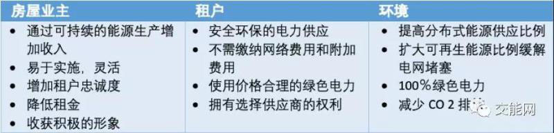 “租戶(hù)電力”不僅僅是簡(jiǎn)單地提供電源,也是對(duì)建筑、房屋業(yè)主、租戶(hù)以及氣候環(huán)境均有益處的一種模式。下表總結(jié)了“租戶(hù)電力”為房屋業(yè)主、租戶(hù)及環(huán)境帶來(lái)的優(yōu)勢(shì)。