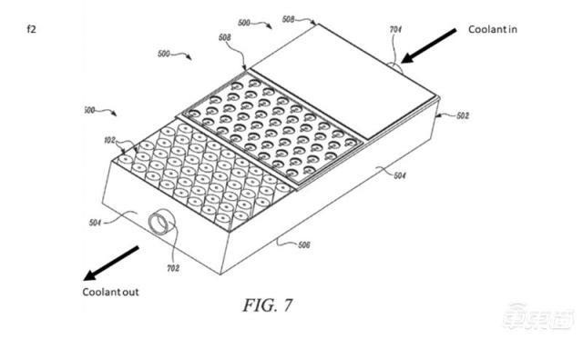 在特斯拉的專利圖片中可以看到,特斯拉為電池組設(shè)計(jì)了兩個(gè)開口,液體可以流入和流出,能夠直接利用液體從電池組中經(jīng)過來降低電池溫度。