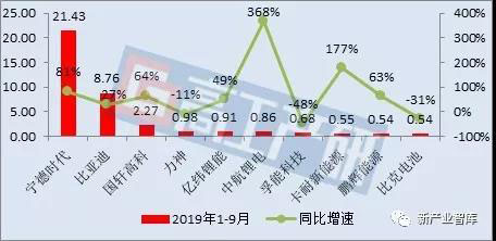 2019年1-9月新能源汽車動力電池裝機(jī)量TOP10企業(yè)(GWh)