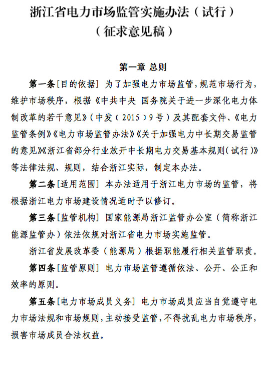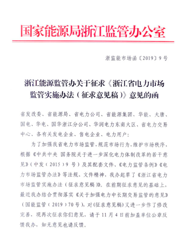中國(guó)儲(chǔ)能網(wǎng)訊:近日,浙江能源監(jiān)管辦關(guān)于征求《浙江省電力市場(chǎng)監(jiān)管實(shí)施辦法(征求意見稿)》意見的函。