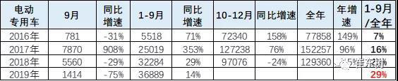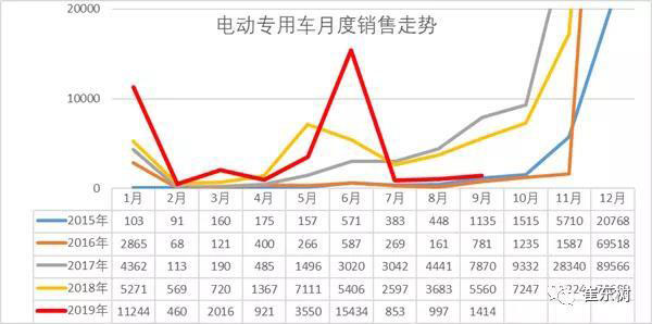 雖然2018年新能源專用車市場走勢總體13萬臺增速的-15%的表現(xiàn)較弱,但這也是暫時(shí)的影響。2019年9月新能源專用車1414臺的走勢相對較差,但1-9月的新能源專用車的銷量3.7萬臺,同比增速29%,年度走勢仍算很強(qiáng)。