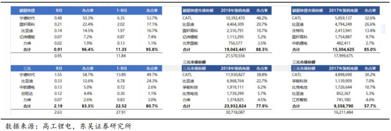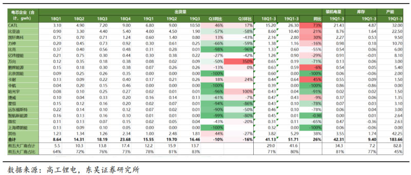 圖表 4:19 年前三季度電池企業(yè)出貨情況(GGII 口徑,單位:gwh)
