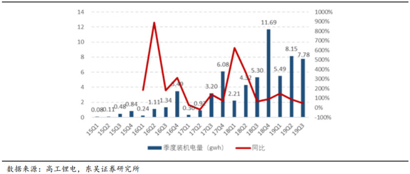 圖表 3:寧德時(shí)代分季度裝機(jī)電量(gwh)