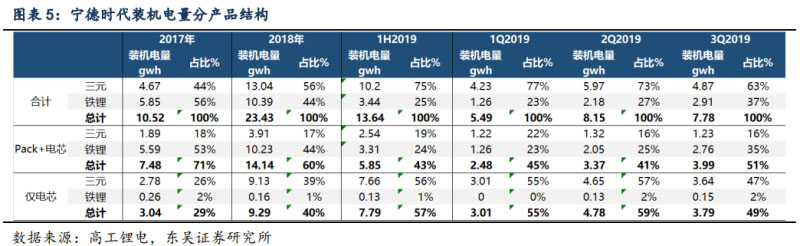 3)Q3 鐵鋰電池份額提升明顯,盈利略好于三元:19Q1、Q2、Q3 公司三元裝機(jī)電 量分別為 4.23、5.97、4.87gwh,分別占比為 77%、73%、63%;鐵鋰分別為 1.3、2.2、 2.9gwh,占比分別為 23%、27%、37%,不斷提升,主要因?yàn)?7 月份大巴車搶裝以及低 續(xù)航車型占比提升。由于成本低,我們預(yù)計(jì)鐵鋰毛利率略好于三元。