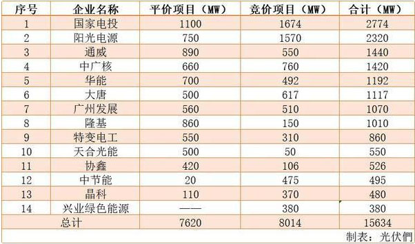 表2:2019年第一批平價(jià)、競(jìng)價(jià)項(xiàng)目中入選規(guī)模排名前列的投資企業(yè)