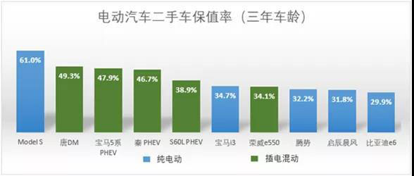 圖4 三年車齡電動汽車二手車保值率