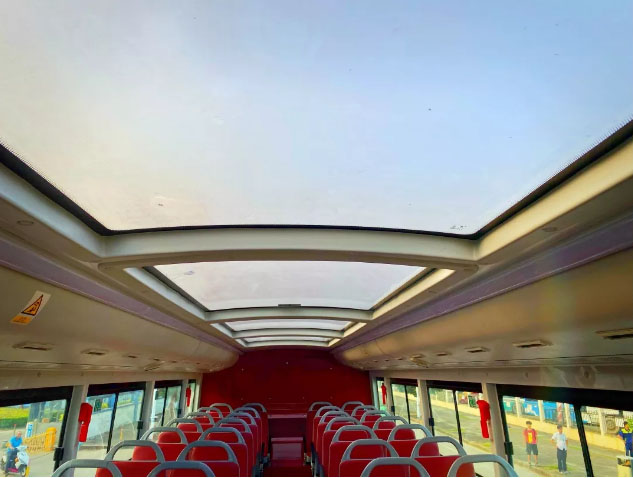 為了進一步探究銀隆新能源“臉譜”雙層巴士的奧秘,發(fā)布會現(xiàn)場嘉賓們走進車廂參觀、體驗。與傳統(tǒng)公交不同,“臉譜”雙層巴士上層采用頂層全景天窗設(shè)計,乘客可體驗敞篷視角的遼闊與愜意,全方位欣賞城市之美。