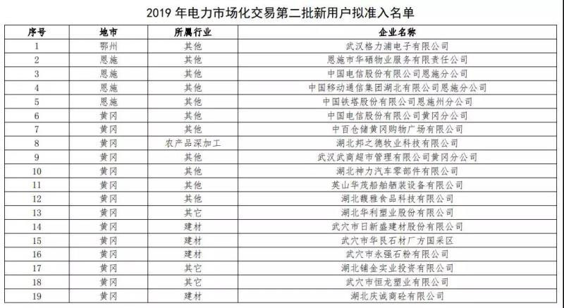 中國儲(chǔ)能網(wǎng)訊:日前,湖北省能源局印發(fā)《關(guān)于湖北省2019年電力市場(chǎng)化交易第二批新用戶擬準(zhǔn)入名單的公示》 。公示稱,根據(jù)《省能源局關(guān)于印發(fā)2019年湖北省電力市場(chǎng)化交易實(shí)施方案的通知》(鄂能源建設(shè)〔2019〕18號(hào))相關(guān)規(guī)定,各市州電力行政主管部門會(huì)同市州其他相關(guān)部門、供電公司按照電力用戶準(zhǔn)入條件有關(guān)要求已完成用戶準(zhǔn)入審查,并報(bào)湖北電力交易中心匯總,我局現(xiàn)將通過審查的96家第二批新用戶名單予以公示(第二批新用戶具體名單詳見附件)。公示期為7天,公示期間如有問題請(qǐng)及時(shí)反饋。