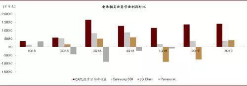 三季度電池業(yè)務(wù)營業(yè)利潤方面(CATL使用經(jīng)營凈收益口徑),CATL、三星SDI及LG Chem營業(yè)利潤率方面分別達(dá)到11%、3%、3%。