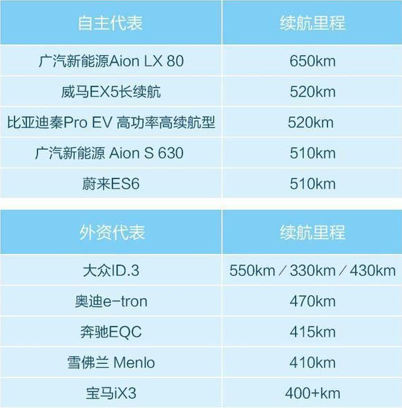 就續(xù)航里程這一指標(biāo)而言,外資車企卻普遍落后。