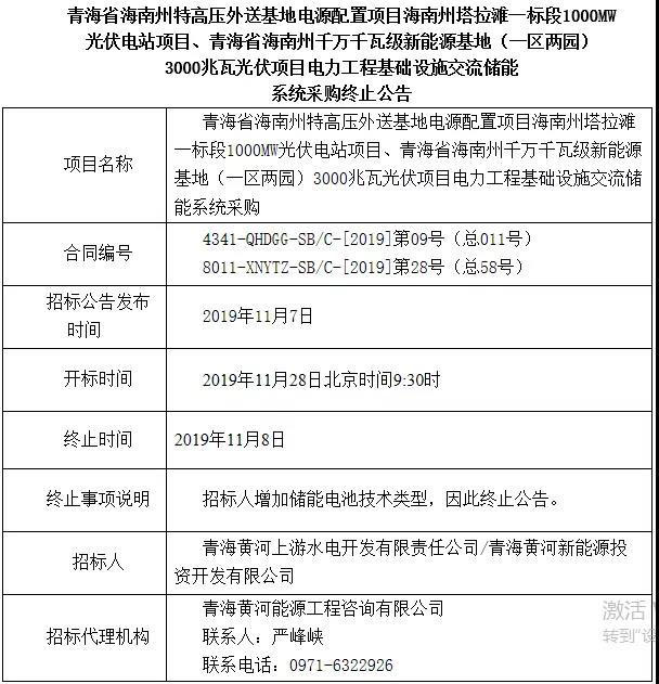 不過,僅僅一天之后,這項(xiàng)招標(biāo)工作被叫停。終止的原因,是投資方需增加儲(chǔ)能電池技術(shù)類型。此前,招標(biāo)公告里限定技術(shù)路線為磷酸鐵鋰電池,且規(guī)格為1C倍率。