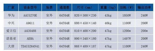 表1 當(dāng)前主流5G主設(shè)備AAU參數(shù)對(duì)照表