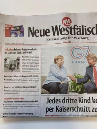 (新聞譯文:當(dāng)?shù)匦侣劊簱碛袝r尚不銹鋼外觀的精致電池技術(shù)瓦爾堡通過在房頂安裝光致發(fā)熱體,盡可能多的儲備太陽能。瓦爾堡GS Hub有限公司提供的產(chǎn)品可以儲備太陽能。在巡展中,Timo Nentwich,Katja Wamuth和他們的老板Gerhard Stamm正在展示他們的時尚電池庫。)