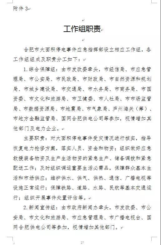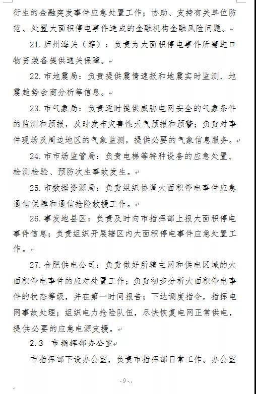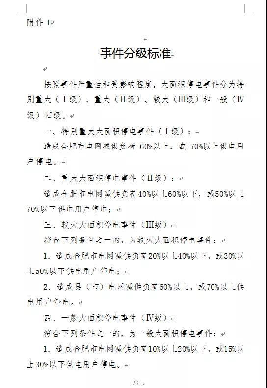 附:合肥市大面積停電事件應(yīng)急預(yù)案(征求意見稿)全文