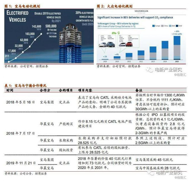 但隨著中國(guó)新能源汽車(chē)產(chǎn)業(yè)快速發(fā)展,寧德時(shí)代已成功打入歐美日韓車(chē)企供應(yīng)鏈,基本覆蓋主流歐洲車(chē)企,同時(shí)孚能進(jìn)入戴姆勒供應(yīng)鏈,億緯進(jìn)入戴姆勒、現(xiàn)代起亞供應(yīng)鏈,欣旺達(dá)打入雷諾供應(yīng)鏈。本次寧德時(shí)代獲得寶馬追加訂單,并且在寶馬102億歐元電池采購(gòu)單中拿到73億,足以證明公司全球競(jìng)爭(zhēng)力。