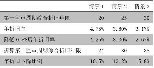 根據(jù)現(xiàn)行《輸配電定價成本監(jiān)審辦法(試行)》,輸配電項目主要資產(chǎn)如輸配電線路、變電配電設(shè)備等,平均折舊年限15-35年。假設(shè)殘值率5%,第一成本監(jiān)審周期綜合折舊年限為25年,年折舊率下降0.5%將使得綜合折舊年限延長至30年左右,折舊降幅可達(dá)13%,以折舊在總成本中占比50%來匡算,則可為總成本下降貢獻(xiàn)約7%的額度。
