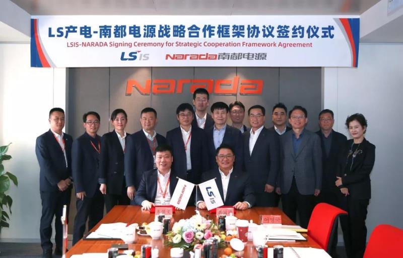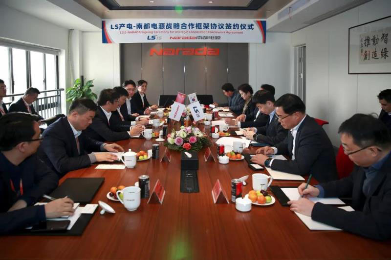LS產(chǎn)電會長具滋均、社長樸龍祥、本部長魚勝圭、總經(jīng)理魚瀅國,南都電源總裁朱保義、副總裁吳賢章、總工程師陳建、總裁助理陳麗穎等出席簽約儀式。