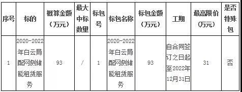 項(xiàng)目名稱:2020-2022年白云局配網(wǎng)側(cè)儲(chǔ)能租賃服務(wù)
